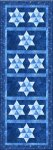 PDF ONLY: A combination of blues and Hanukkah prints, along with one panel, create this wonderful wallhanging. Also included are instructions to create the Star of David table runner and coordinating placemats. Simple paper piecing, together with simple piecing, combine to make a wonderful addition to your decor. Projects pictured feature Northcott's Happy Hanukkah line.